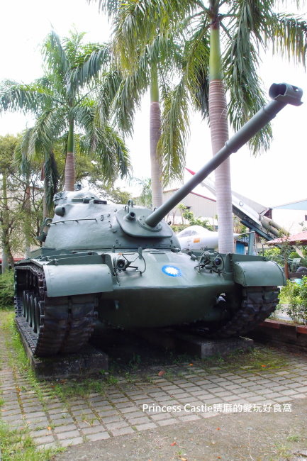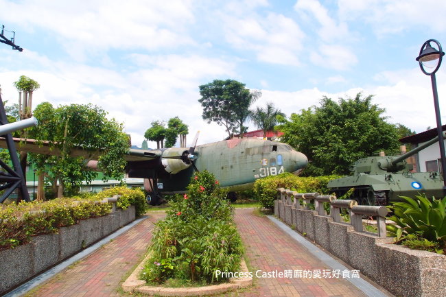 園區內擺放著許多軍事裝備和零件,包括了大型的坦克戰車和戰鬥飛機