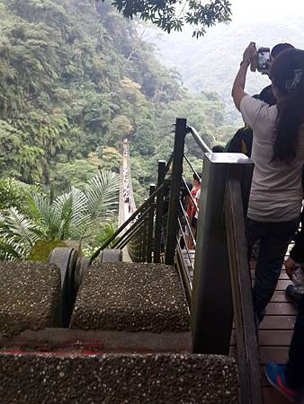 而且人又很多,一去一返的人潮讓整個橋身都在晃動