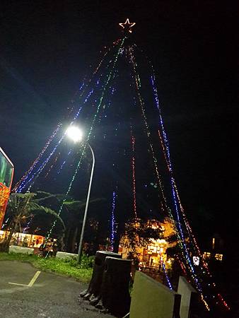 中間經過了一個全身裝滿裝飾燈的聖誕樹