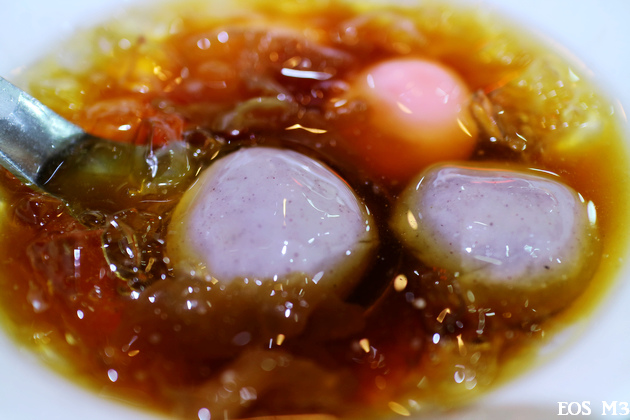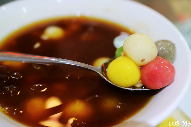 桂圓木耳湯甜度剛剛好,不會死甜不會膩。包著餡料的紅豆和芋頭湯圓,Q彈飽滿好滿足!