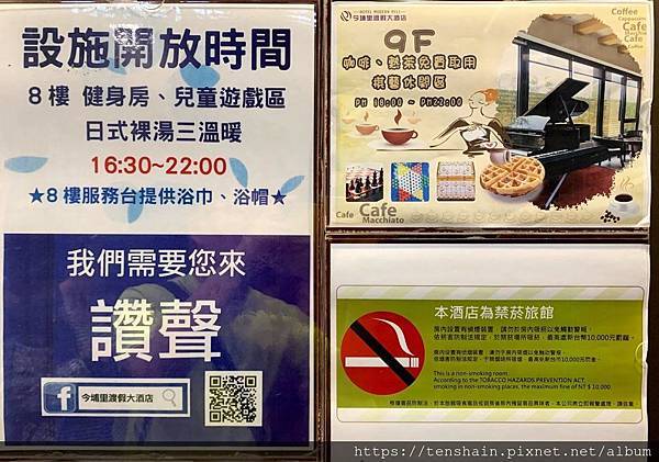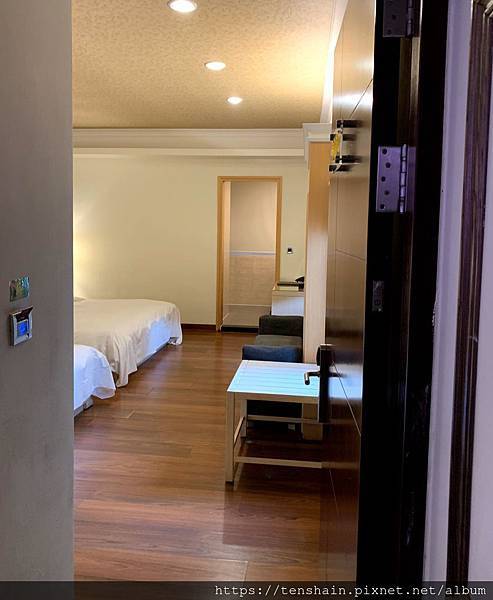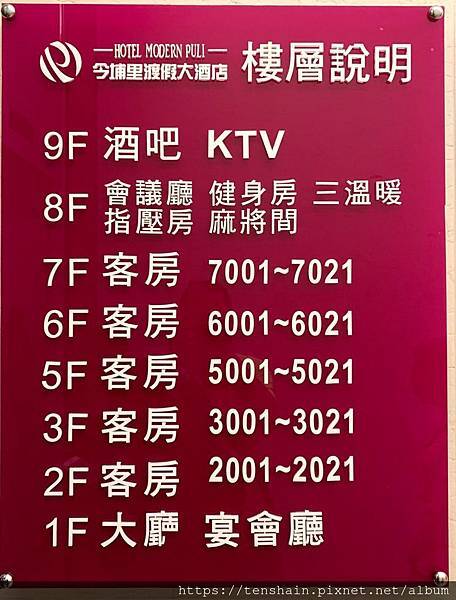 回到飯店,到櫃台領了房間鑰匙,準備進房啦!電梯外有清楚的標示,公共樓層集中在八、九樓,今晚我們的房間在二樓。