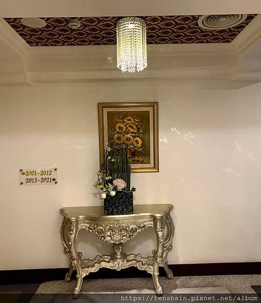 二樓一下就到了,電梯口有擺飾,稱不上金碧輝煌,倒也清爽雅致。