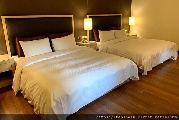 兩張雙人床,躺起來軟硬適中,只是塑膠地板有些許地方不是很平整,但不到窒礙難行的地步。
