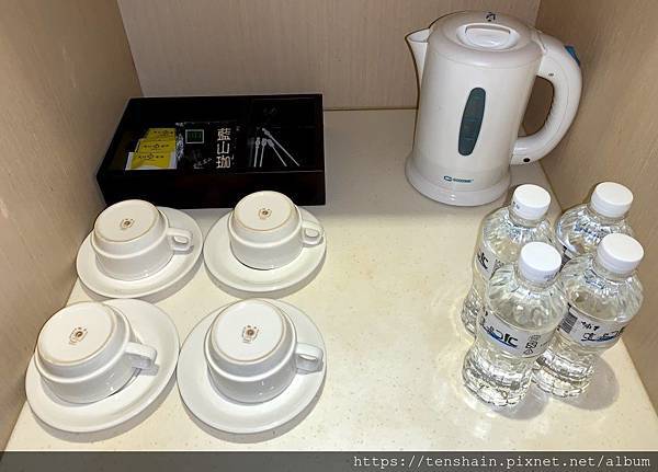 四罐小礦泉水、茶包和咖啡包,如此而已。