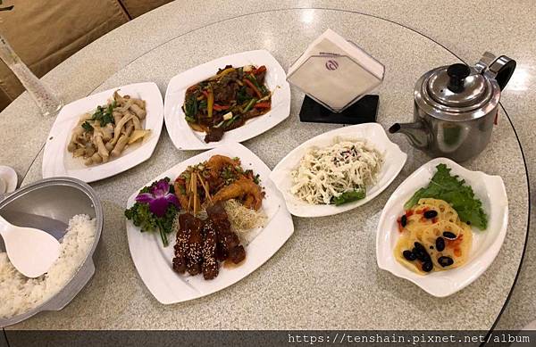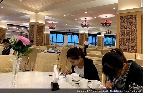 放好行李,輪流上完廁所,我們預訂的晚餐時間快到了,趕緊到一樓的餐廳入座。餐廳頗大,這也是明早吃早餐的地方。