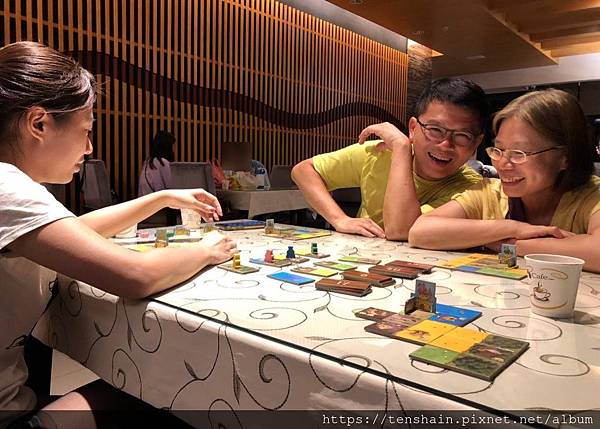 我們挑了一款新天鵝堡的桌遊-米諾王國Kingdomino,這款遊戲很容易上手。我們稍微研究了一下,就玩得不亦樂乎,欲罷不能。回到家一查,才發現它來頭不小:2016年桌遊怪客獎最佳家庭遊戲入圍、2017年荷蘭金遊戲最佳家庭遊戲獎冠軍、2017年德國年度遊戲獎冠軍!立馬在購物網站下單,買了一組回家,就是希望兩天假期的歡樂能夠延續得長長久久,家人的笑聲能在家中永遠迴盪啊~