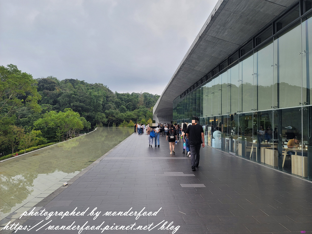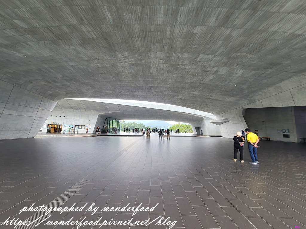 建築內和四周以水景、草皮及木紋清水模構成簡單的造景半建築半地景的建築設計