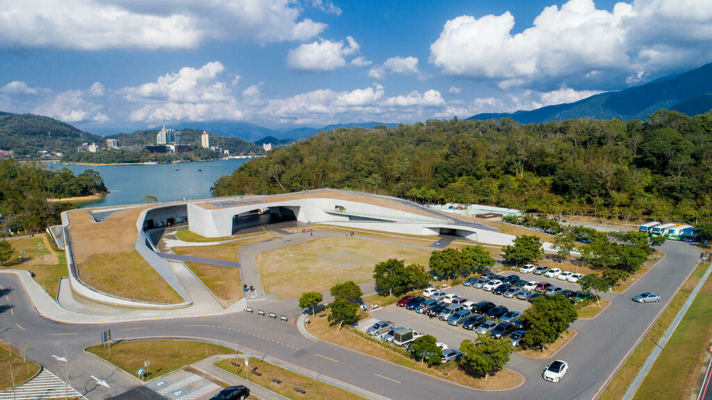 鳥瞰建築物,猶如雙手環抱整個日月潭的湖光山色