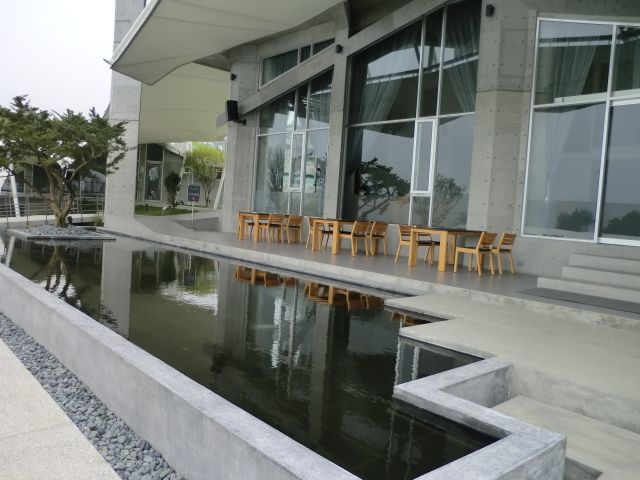 主棟外面的水池造景~整個建築都是用「清水模」工法建築而成