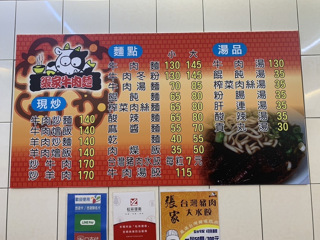 ▼張家牛肉麵的菜單~品項超多種,想吃多、想吃少攏誒賽(台語)(•̀ᴗ• )
