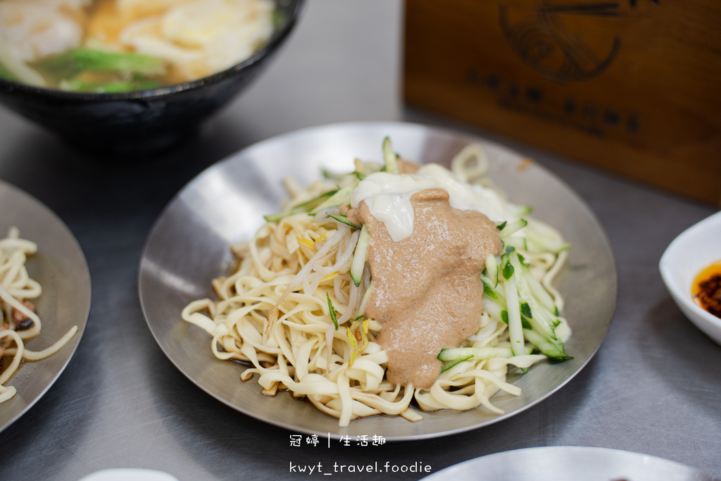 寬油麵 / 芝麻醬 / 特製白醋 / 小黃瓜絲 / 豆芽菜