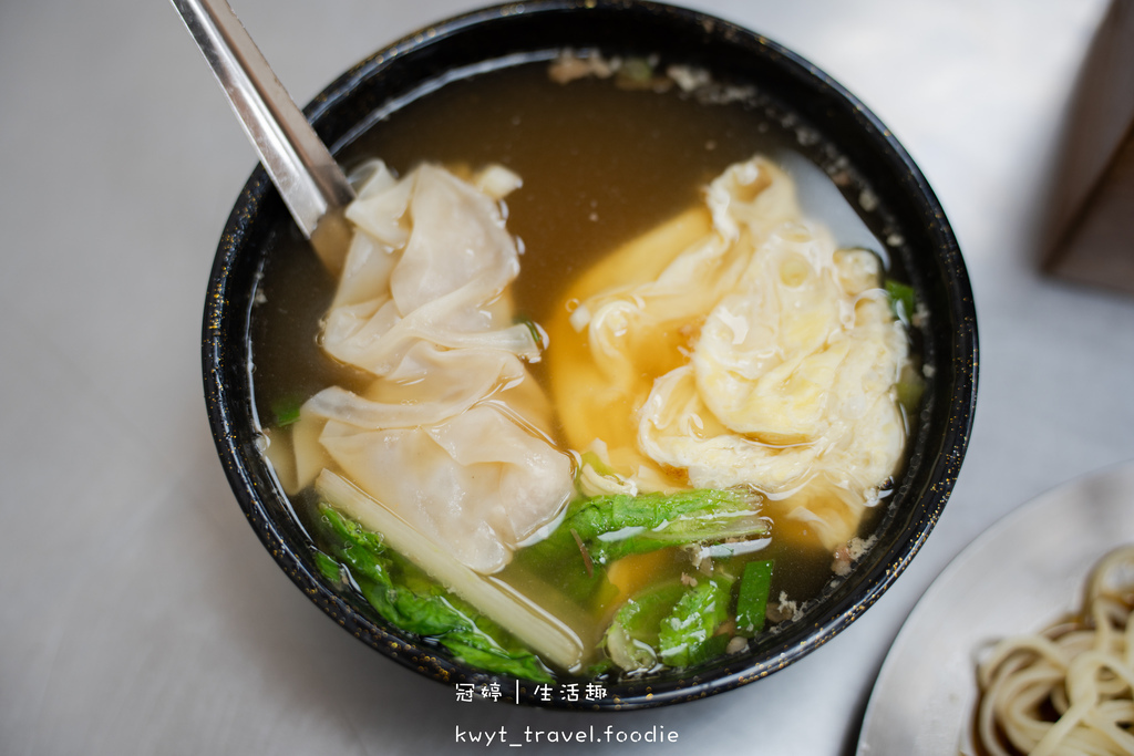 一個銅板可以吃到有完整一顆蛋包、幾顆貢丸、餛飩,加點青菜的超有料三合一湯。