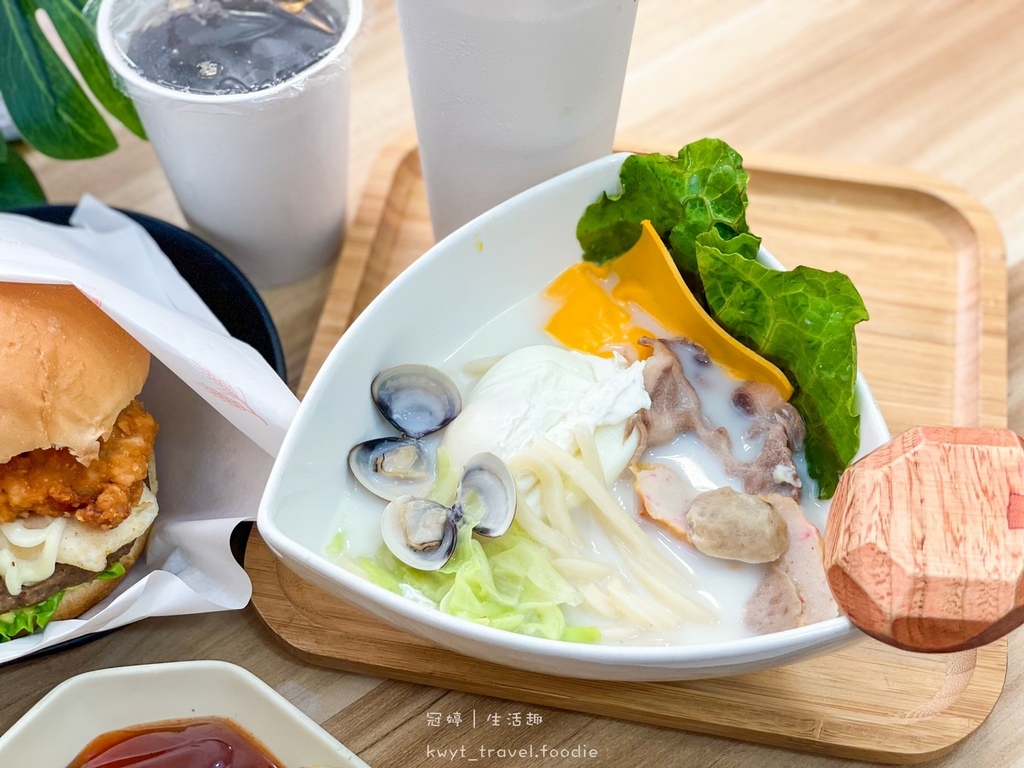 冬日微冷的早晨,來碗現點現煮的起司牛奶鍋燒麵,超~暖心!帶有濃厚韻味的湯頭,與鮮味蛤蜊、奶香起司、清甜高麗菜、增添口感的QQ火鍋料,搭配保有咬勁、吸飽湯頭精華的烏龍麵,吃完這碗整個暖起來。