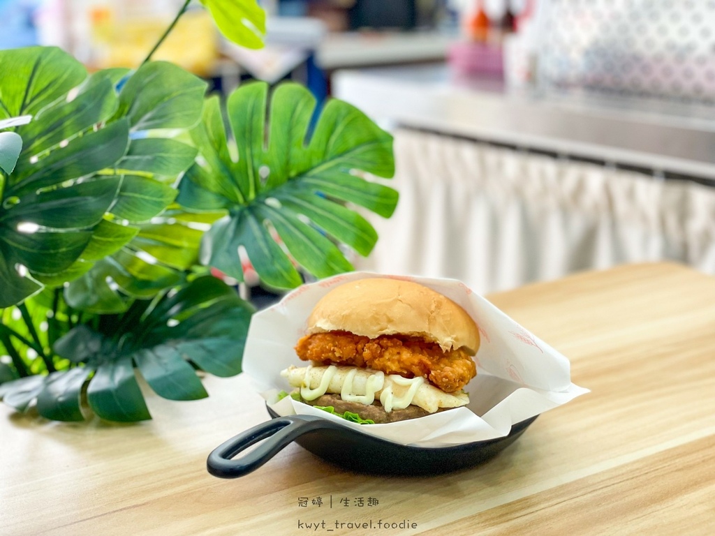 咔啦雞腿起司美式漢堡 + 蛋 60元