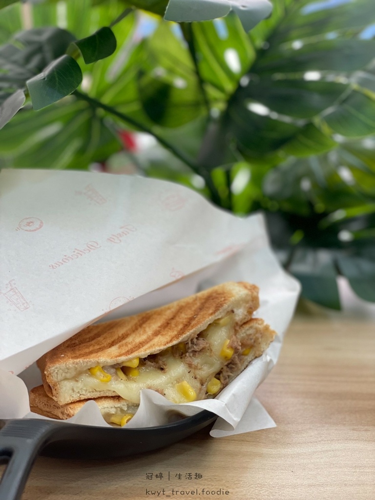 在帶有鹹感的鮪魚、起司之上,多加了一重帶有甜味的多汁玉米粒,在經過熱壓吐司機烘烤後,成就一份外脆香,內層口感豐富的美味熱壓吐司,每一口都可以吃到高品質鮪魚的鮮香、起司的奶香、玉米的甜香,蠻不錯的。