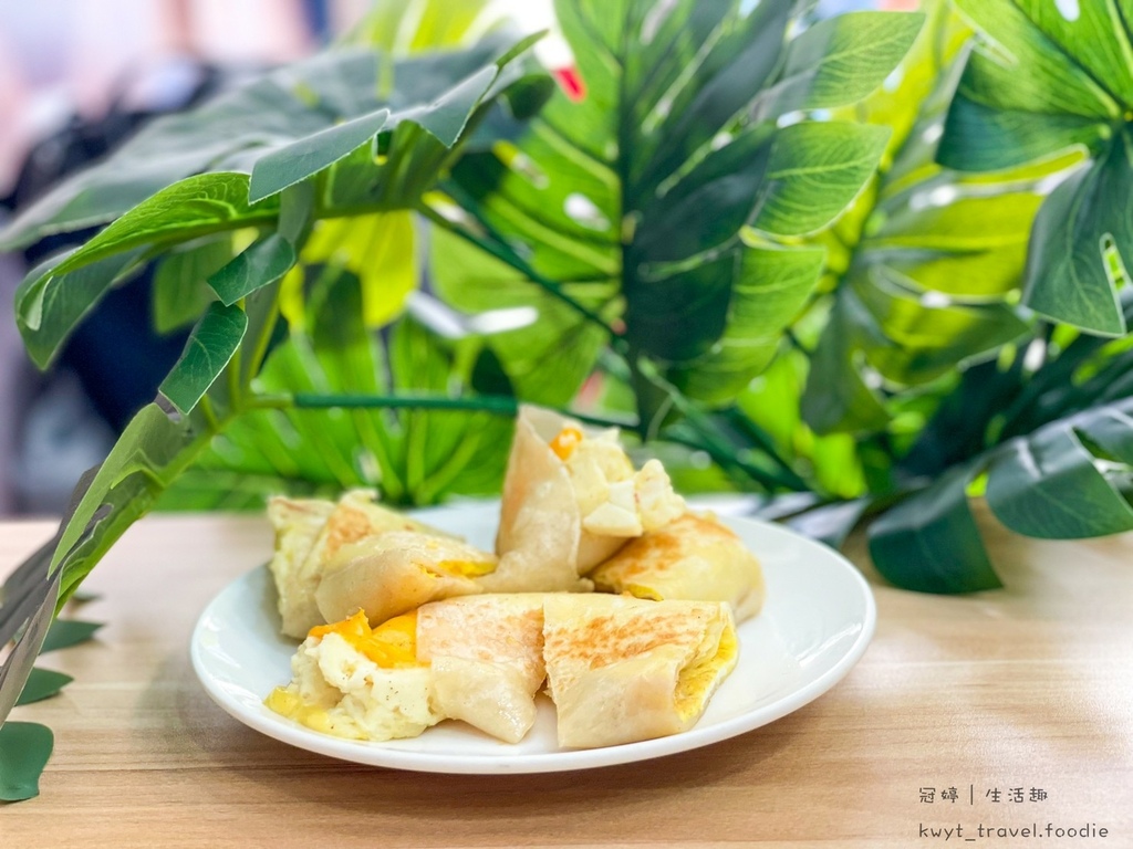 特別為蛋奶素朋友們設計的一款早餐,使用馬鈴薯泥、蛋、起司作為蛋餅的餡料,蛋餅皮中包的餡料是十分飽滿的,可以嚐到每一塊蛋餅中鬆軟、香氣十足的馬鈴薯泥、蛋香、奶香,與帶有嚼勁的蛋餅皮。