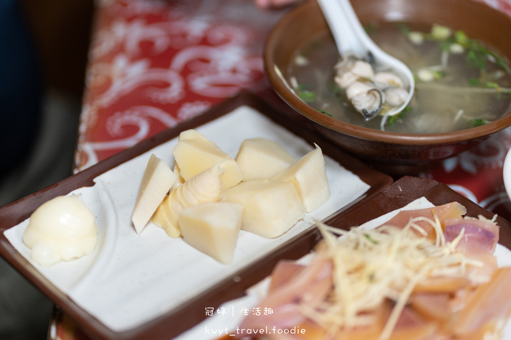 在嘉義許多小吃店的小菜都會搭配美乃滋一起享用,原本甜脆可口的竹筍,搭配可增添整體風味層次的美乃滋一起吃,還不錯。