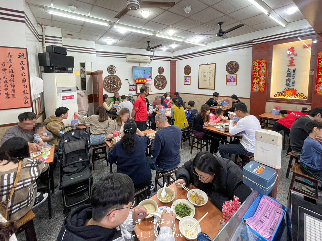 民主火雞肉飯店面頗大,從民族路橫跨到和平路,每天從開店 → 營業時間結束人潮總是絡繹不絕,小小建議可以在每天的15:30~16:30前往用餐,人潮有少一些些,免久候即想真材實料系的人氣嘉義火雞肉飯好滋味。