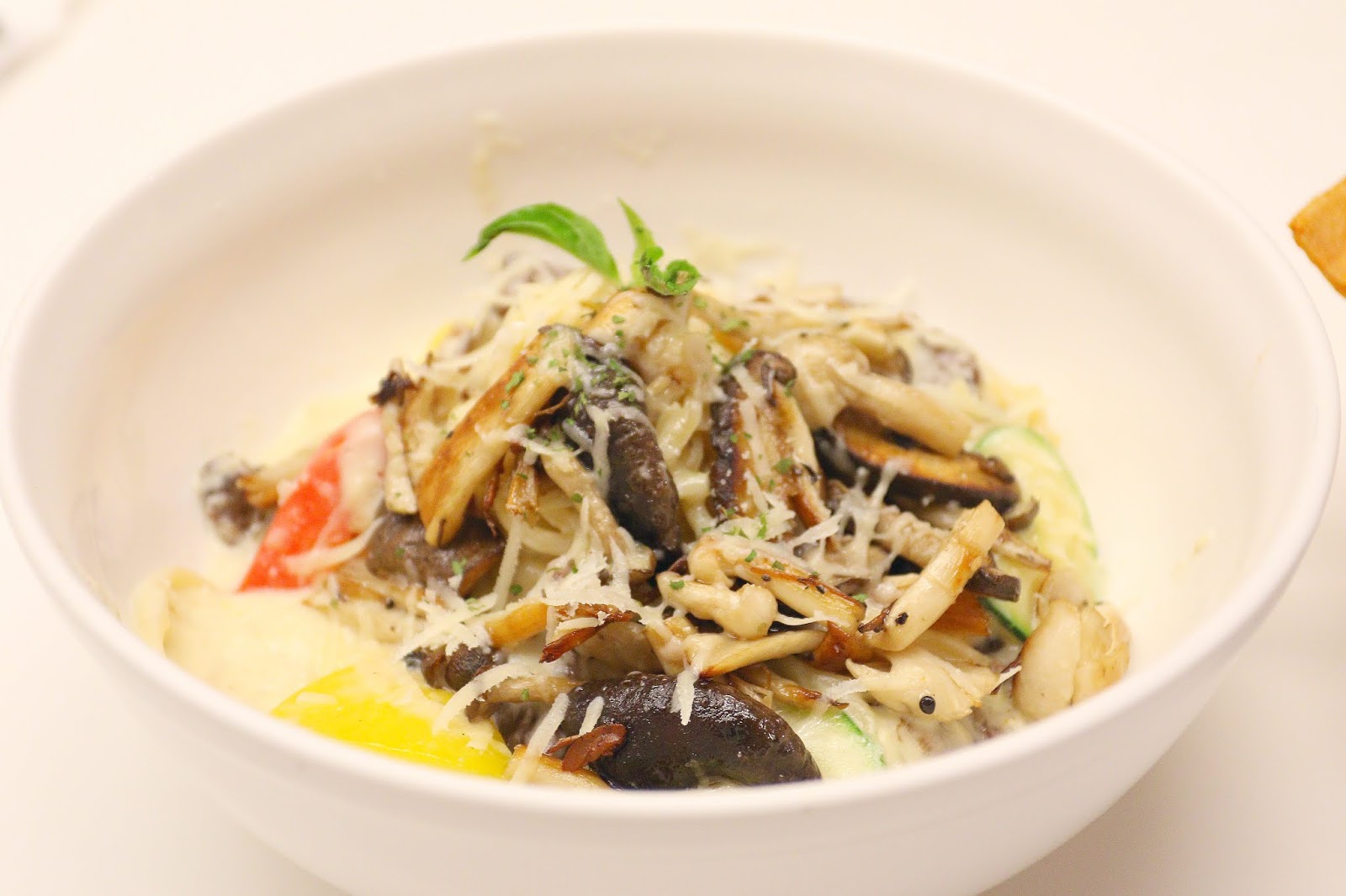 [奶油蘑菇雞肉‧脆餅義大利麵]