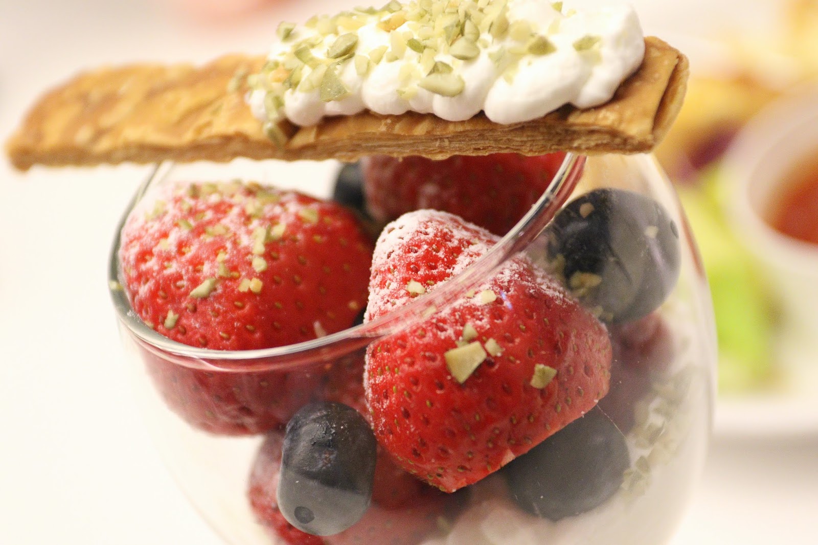 草莓特殊的香氣與莓果酸搭配微甜的藍莓剛好,塔皮酥口像餅乾,