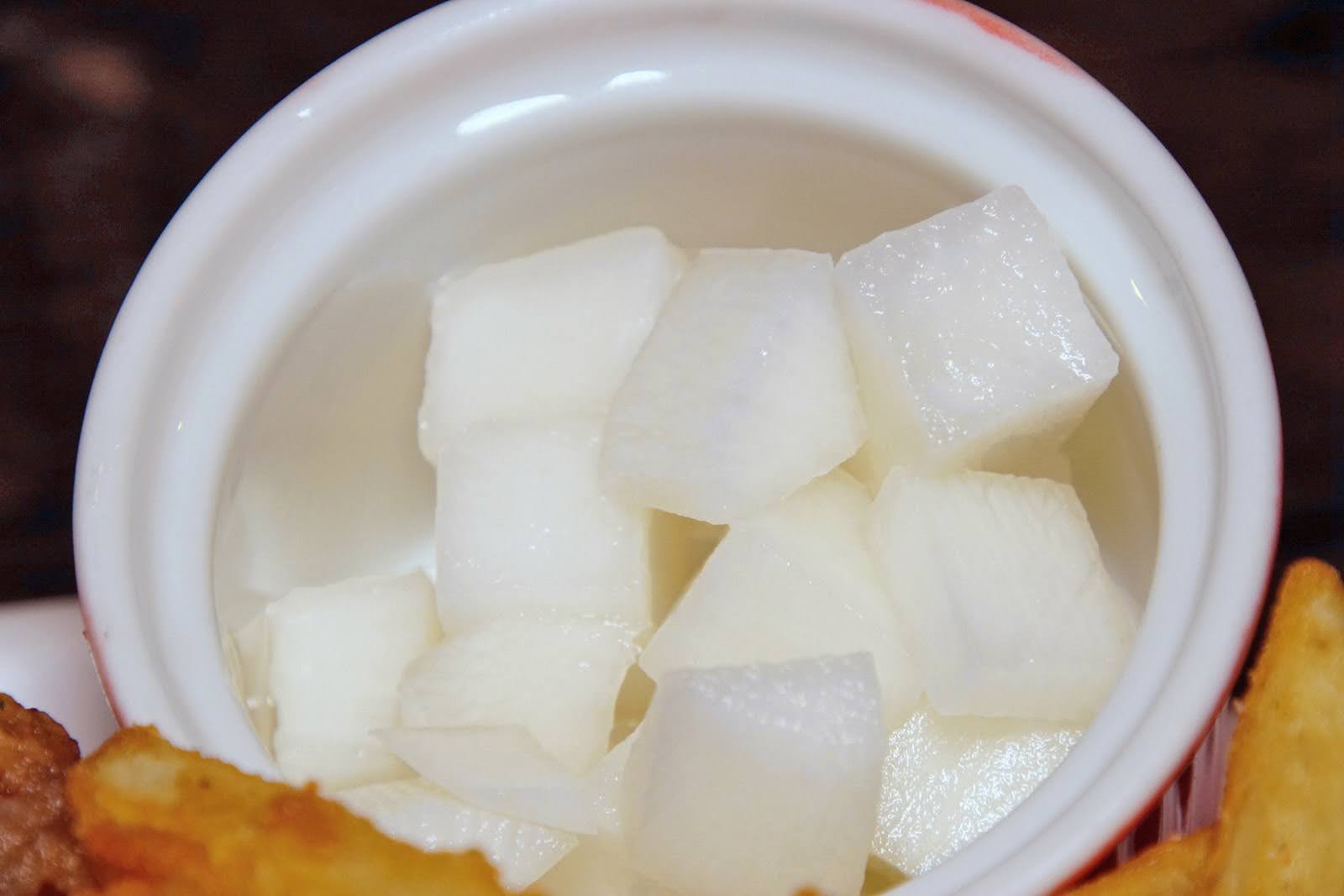炸雞都會附一小份醃蘿蔔,去油解膩十分合適。
