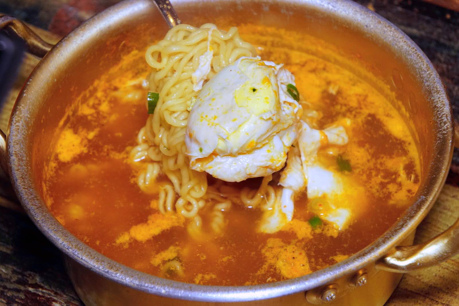 韓式拉麵,韓式辣湯與泡麵口感的主食,還加了一顆荷包蛋在其中