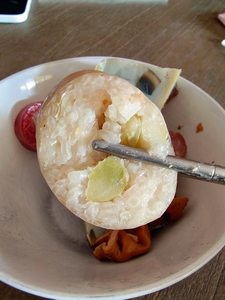腸衣和糯米都是用台灣產的,糯米吃起來Q糯有米香,腸衣咬起來還會脆脆的,油蔥香氣十足、皇帝豆清爽