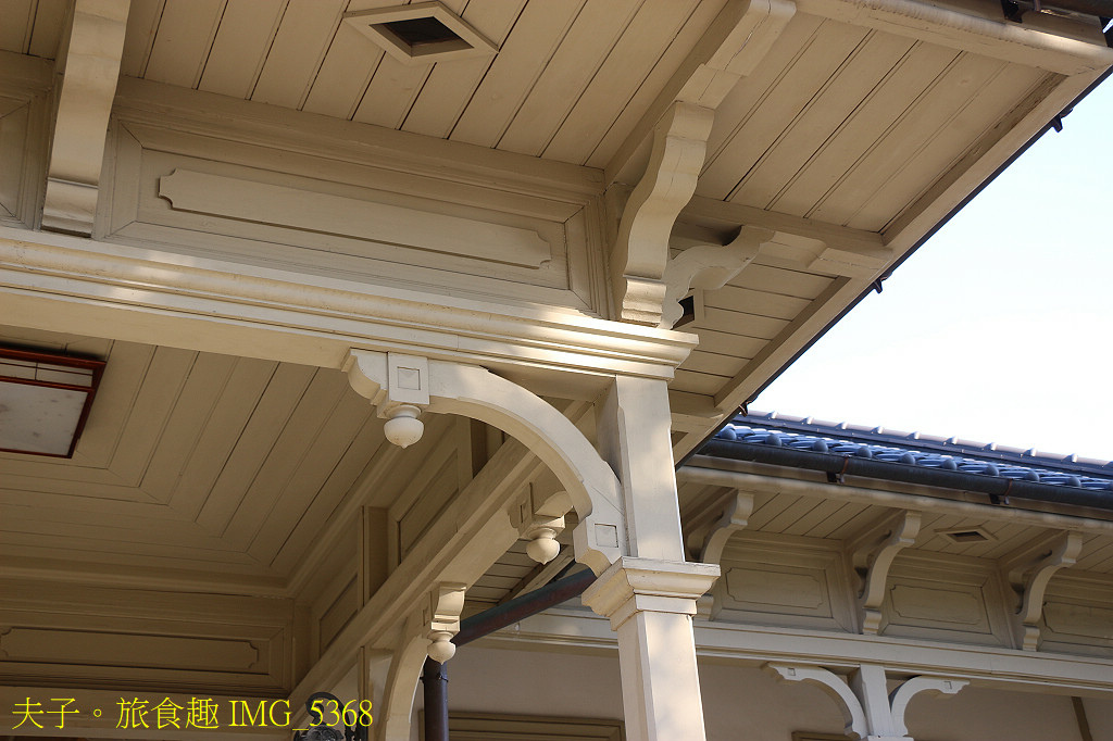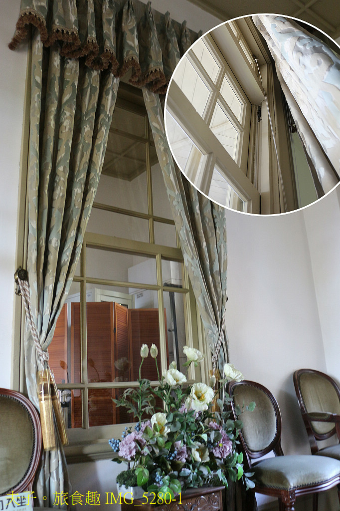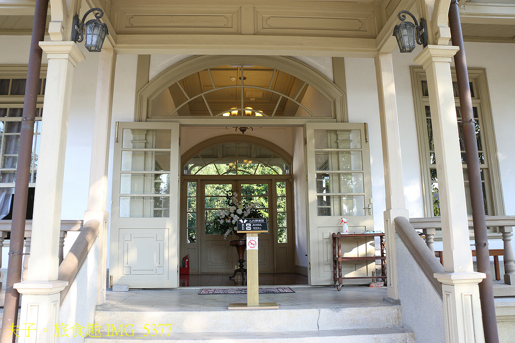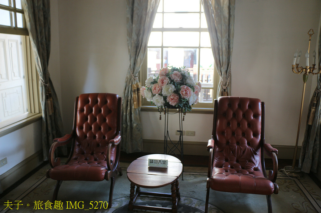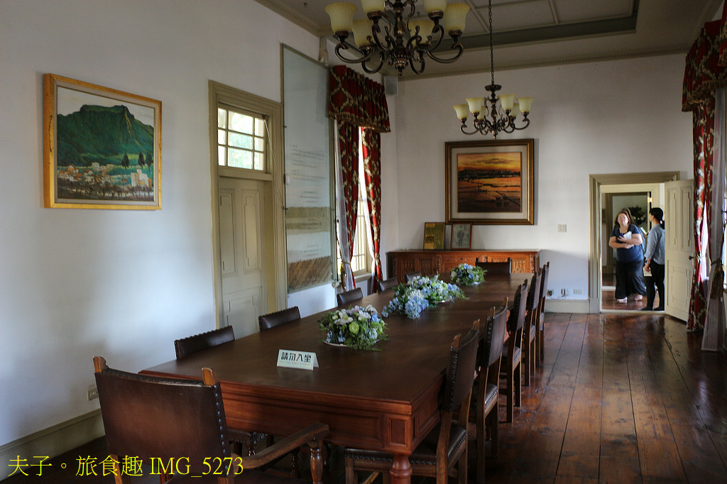 「原台南廳長官邸」洋館建築,牛腿形托架、弧形托架、欄杆,倒吊寶珠飾、西洋柱式、圓弧形欄間、斜向的木摺板天花與牆面等設計手法,頗具特色值得細品觀察。