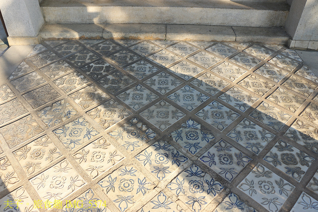 洋館門廊入口的印花地磚,珍貴有歷史價值的明治時代「印花文敷瓦」。