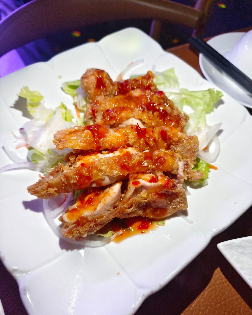 雞肉口感嫩滑,搭配泰式椒麻醬汁,酸辣帶勁。