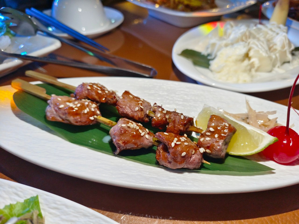 牛肉串口感軟嫩,搭配烤肉醬,超下酒。