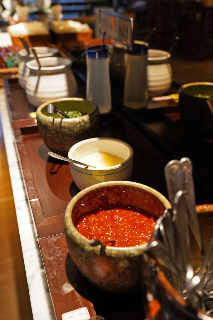 ▼自助區可以拿火鍋沾醬和餐具。