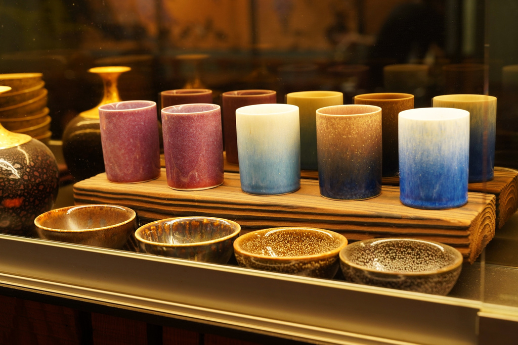 ▼拿杯子時看到展示櫃裡的陶具,顏色好漂亮!