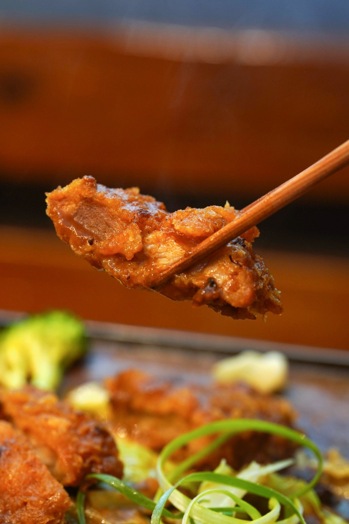 ▼外酥內嫩的炸豬排,搭配濃郁香醇的咖哩醬,在鐵板上滋滋作響也令人食指大動!