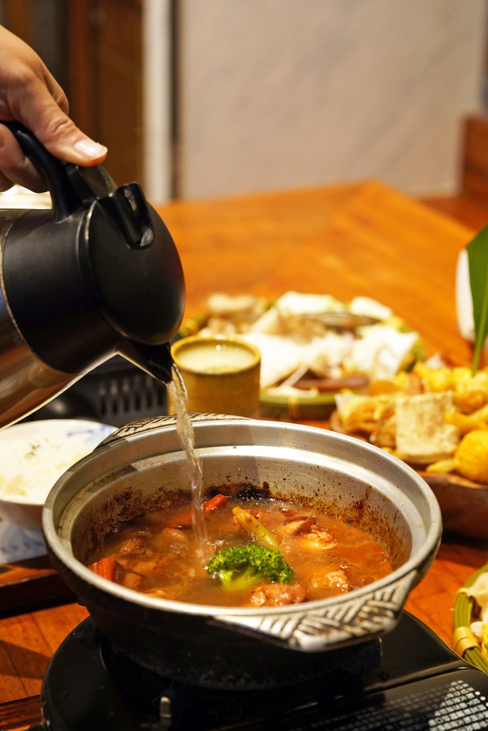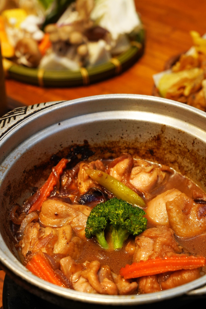 ▼乾鍋吃到一半加入高湯,放入菜盤,又是重新滿滿一鍋,好挑戰大家的食量啊~湯頭稍微滾一下,高湯融入花雕雞的精華,連蔬菜也吸附了花雕酒香,我老公說吃了真的讓人欲罷不能誒!