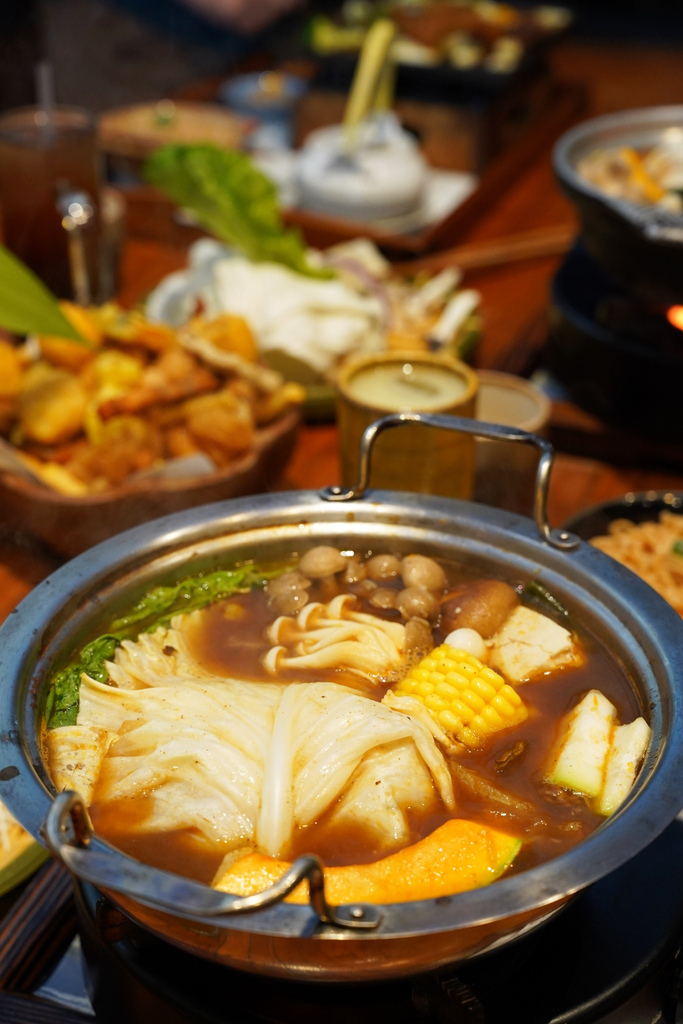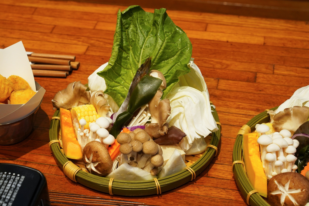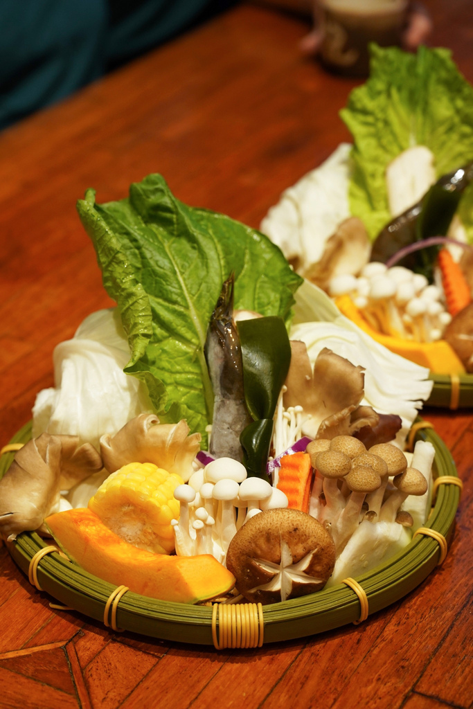 ▼附的菜盤內容也很豐富,包含各種蔬菜、菇類、白蝦。