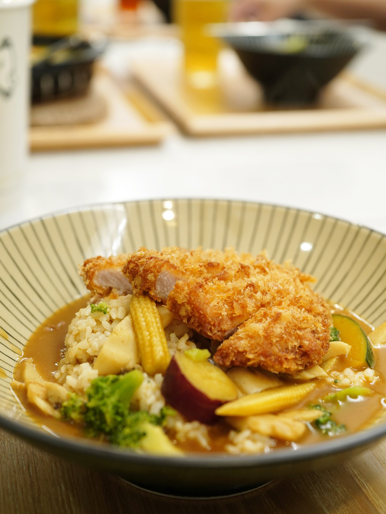 炸豬排用的是日本麵包粉,炸得恰到好處,完美鎖住肉汁,一口咬下還有肉汁流出,口感酥脆多汁。咖哩醬更是用了四種咖哩熬製而成,味道濃郁卻不過於辛辣,大人小孩都能接受,連我怕辣的朋友都能接受。