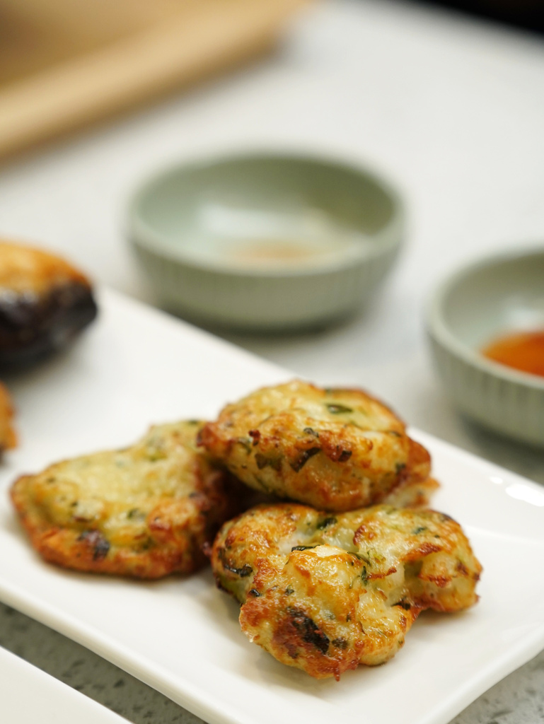很少見用豆包做的花枝蝦餅,因為是氣炸的,吃起來完全沒有負擔,低脂又健康。