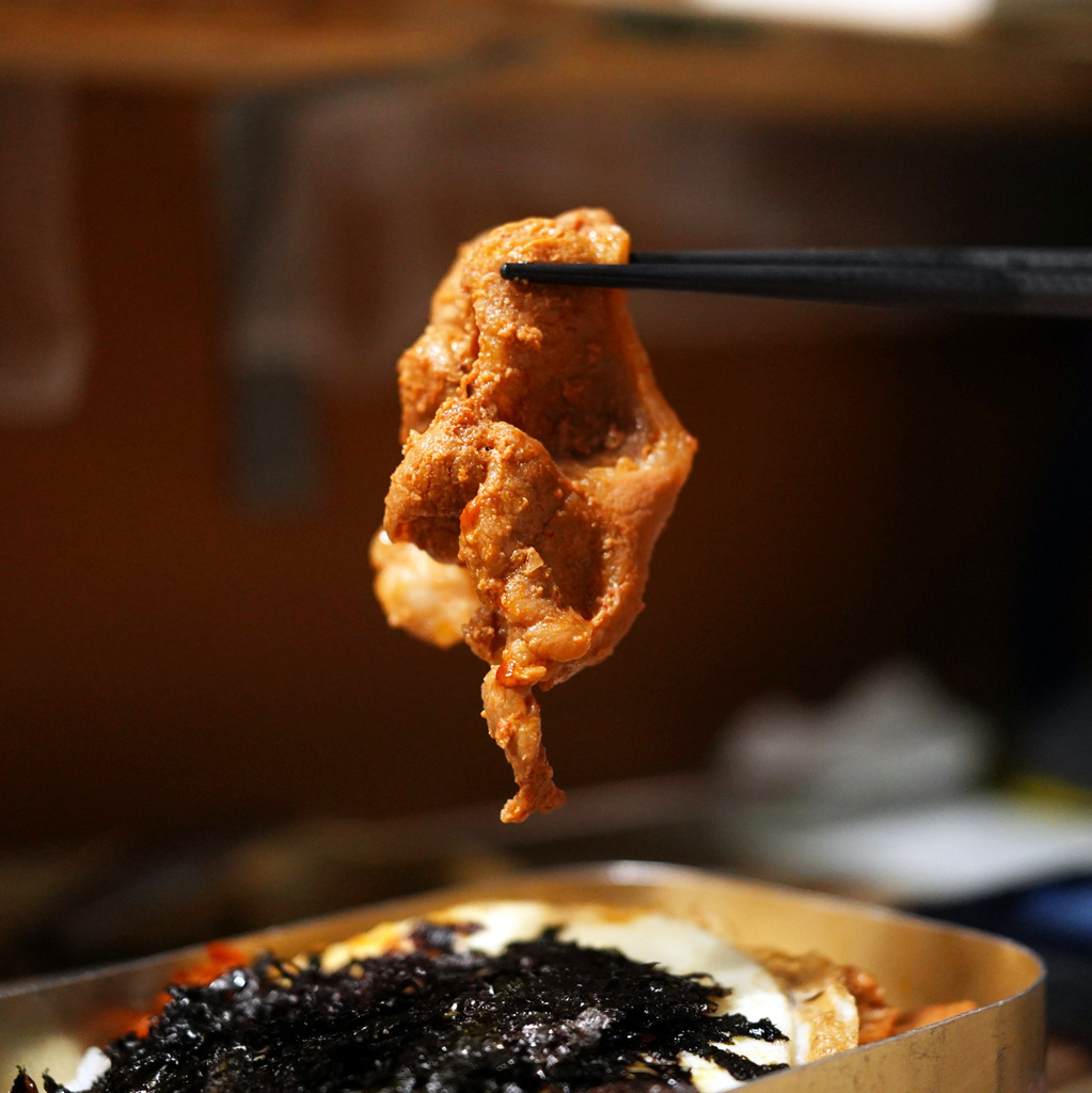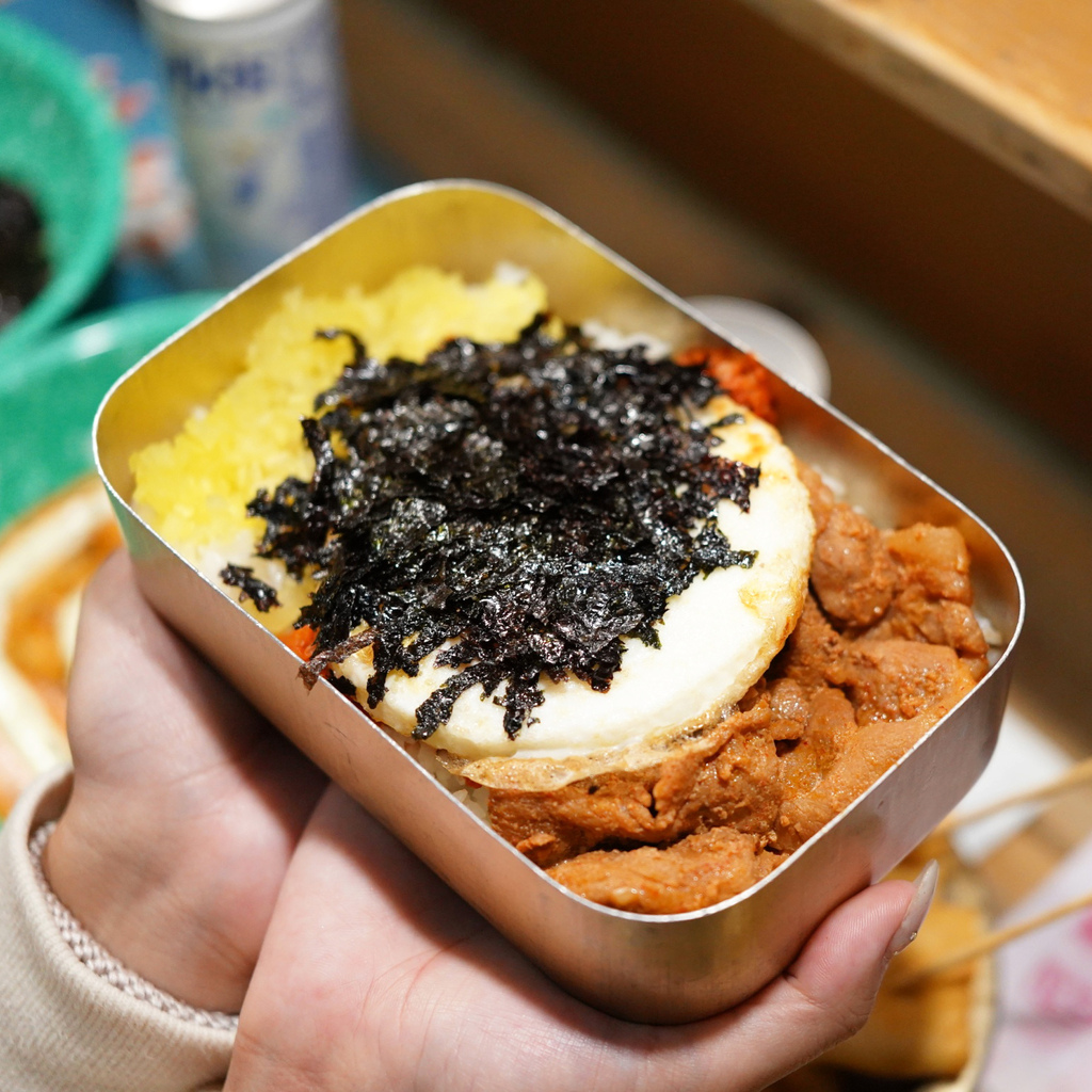 裡面有烤肉、荷包蛋、海苔絲、韓式泡菜和甜甜的醃蘿蔔,帶點麻油香氣,拌一拌味道很均勻,好吃又不膩口,很經典討喜的韓式風味,接受度很高!