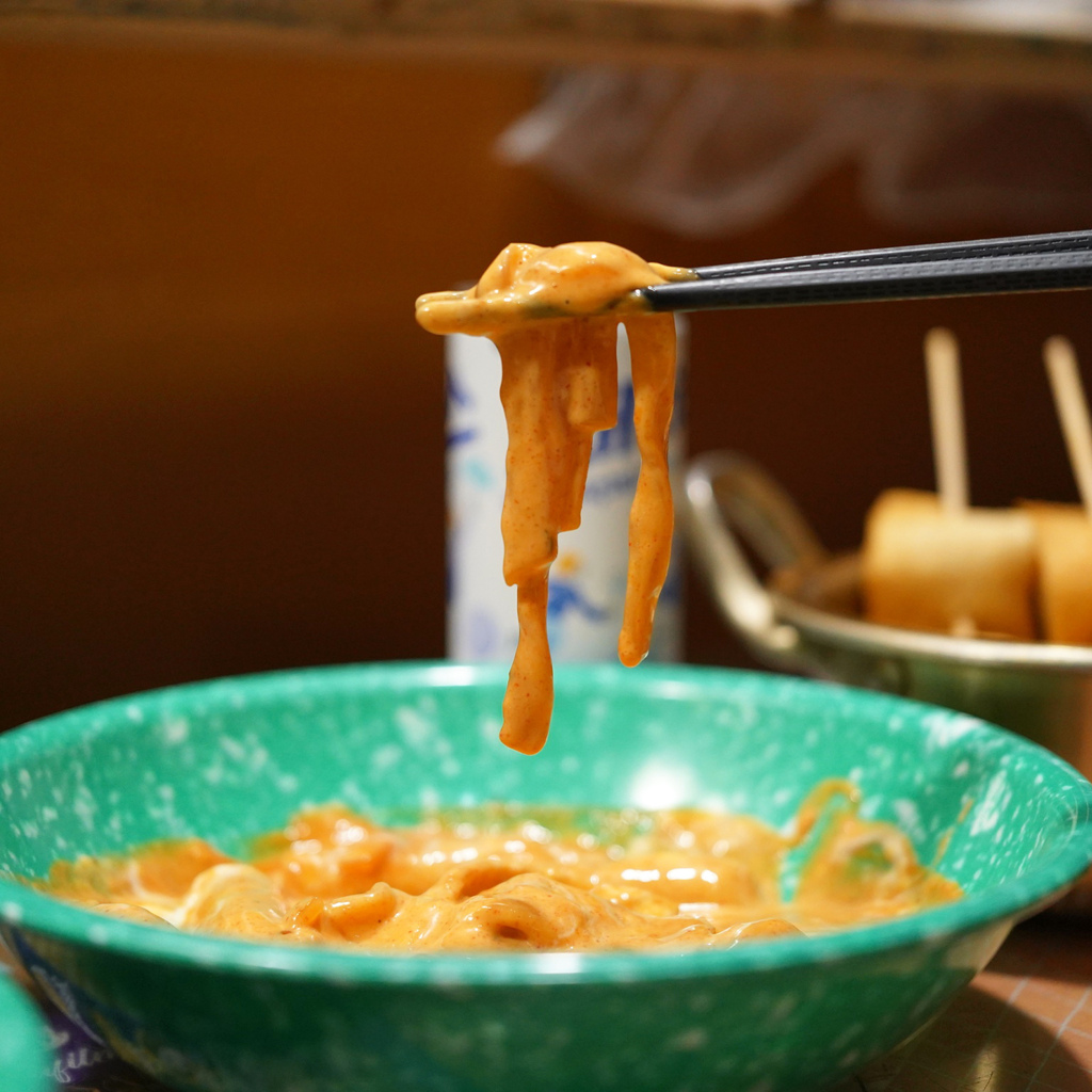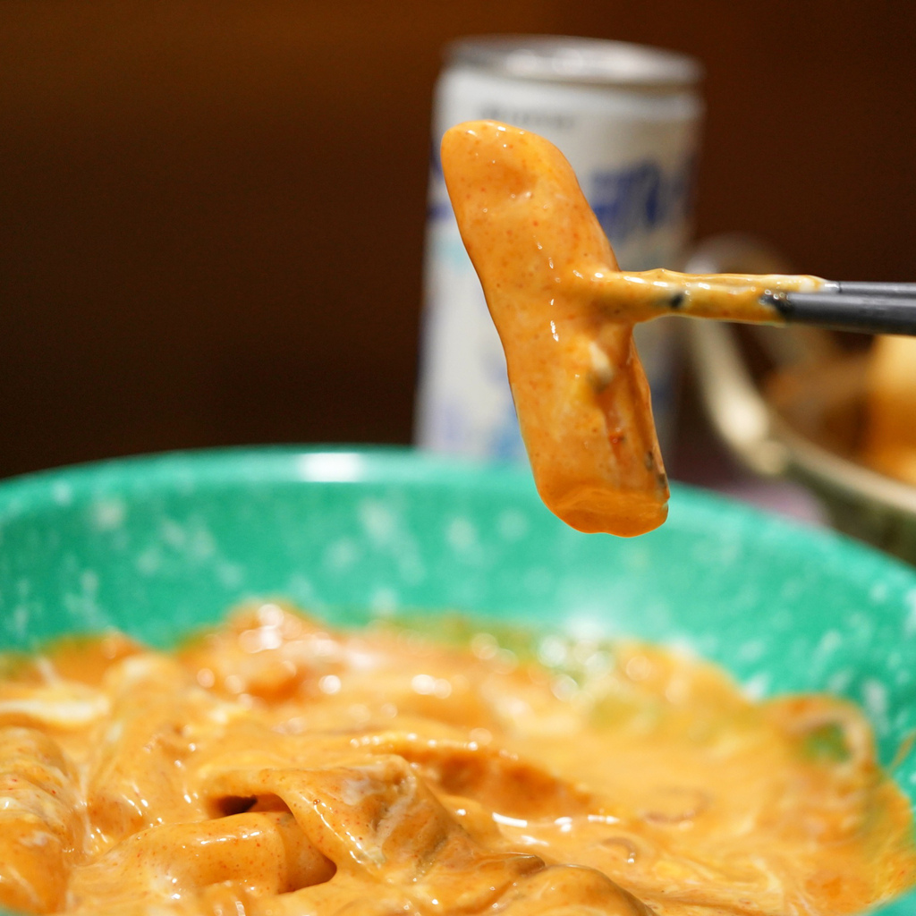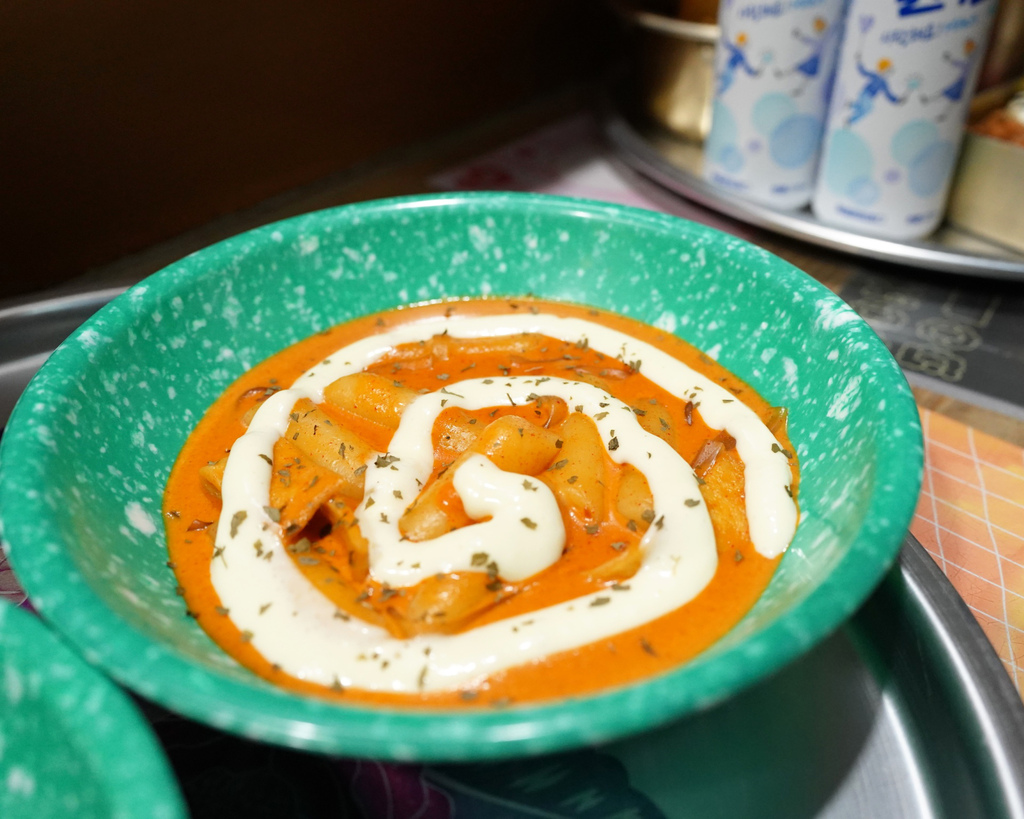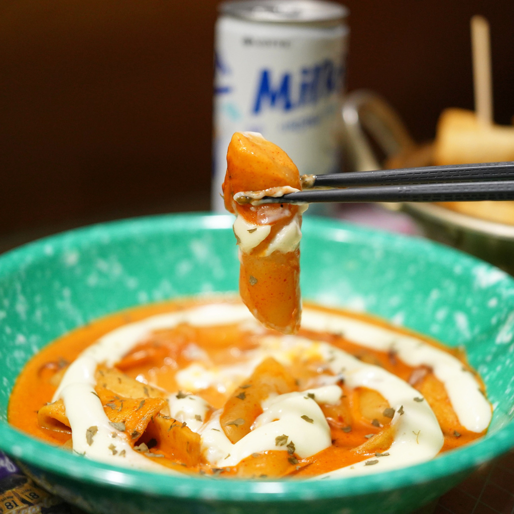 重點是,它的辣度比傳統辣炒年糕溫和很多!帶點奶香和微辣,很容易入口,如果你想吃辣炒年糕的Q彈,又擔心辣度太高,點這道準沒錯!
