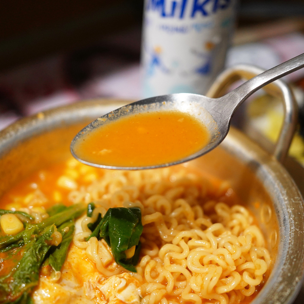 ▼老婆很常點這鍋,湯頭混合了起司,喝起來是濃郁夠味又開胃的路線,配上熱呼呼的拉麵,大口吸麵就是爽!