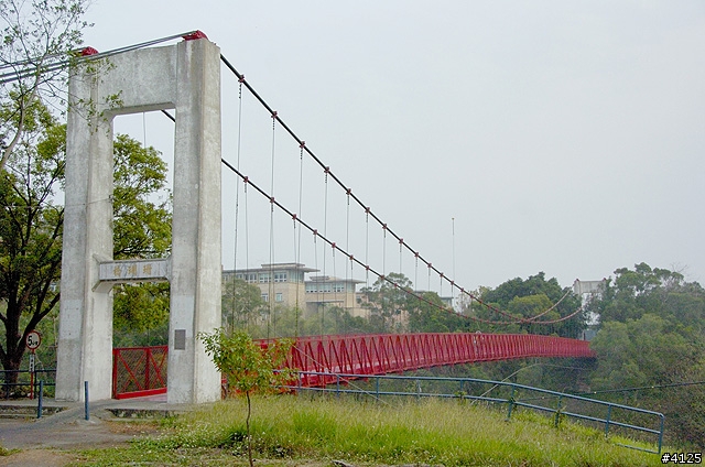珊瑚潭水庫的邊緣,有一座珊瑚潭吊橋,水庫的工作人員大多從這裡進出,橋上不時有機車來往橋的兩邊,我也是從這個橋過來的。