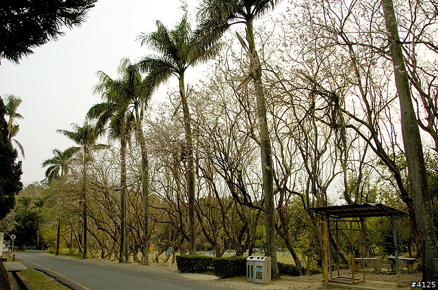 在後方的這條道路上,一排椰子樹加上一整排的桃樹,桃花的花期已經過了,不然這裡應該是相當的漂亮。