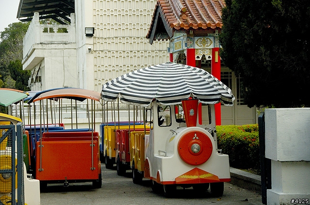 沒遊客,當然環湖的 "不是小火車" (因為沒有軌道,但上面又是寫小火車),通通在一旁休息啦。