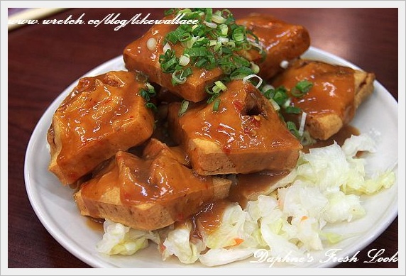 店家很貼心把每塊臭豆腐的表面劃開 使醬能滲入更多
