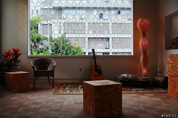 這是一個展覽空間,展場原本是一棟兩層樓建築,一、二樓分屬不同人,所以樓梯就建在室外,有點類似現在常見的5層樓公寓,最醒目的則是它2樓造型特殊的鐵花窗。