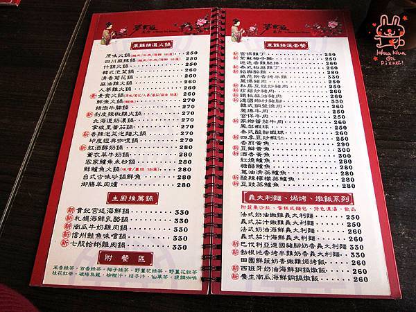 菜單!有火鍋、套餐、還有義大利麵焗烤等等