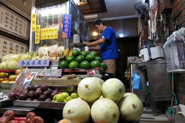 散步完回來蜷尾家仍然是大排長龍,我們在泰成水果店喝了香濃的木瓜牛奶