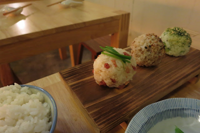 飯團套餐。黑豬肉香腸的飯糰好吃 :)