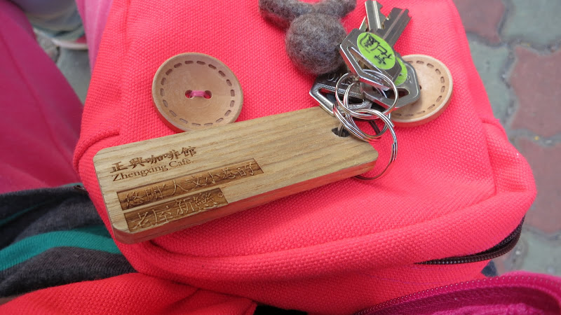 鑰匙圈木片上寫著 悠閒人文小巷的 老屋新戀。 但帶著小寶貝似乎跟悠閒沾不了邊 :P